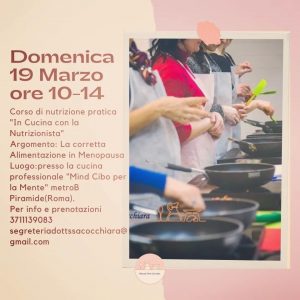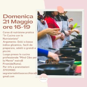 Organizzo i corsi pratici di cucina “In Cucina con la Nutrizionista” per promuovere la consapevolezza nel percorso nutrizionale: nella sezione eventi troverai i corsi finora organizzati e guardando le foto si può provare a respirare l’atmosfera gioiosa che li caratterizza!